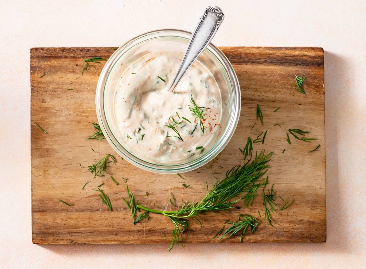 Meng alle ingrediënten + 1 el augurkenvocht (per 4 personen) tot een gladde saus. Breng op smaak met zout en peper.