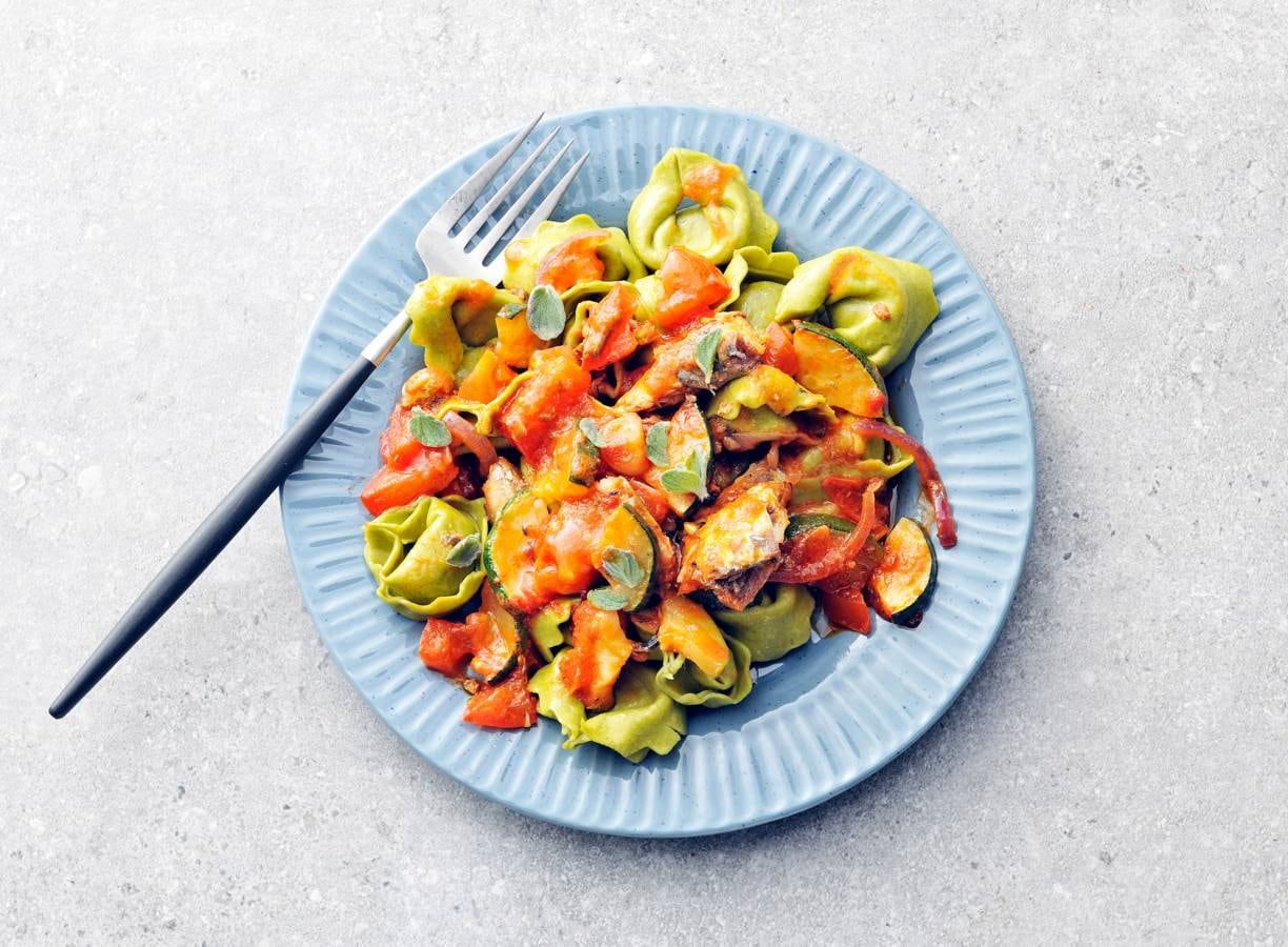 Iedereen uit Team Pasta opgelet: deze tortelloni met tomaat, courgette en sardines zet je al in een kwartier op tafel.