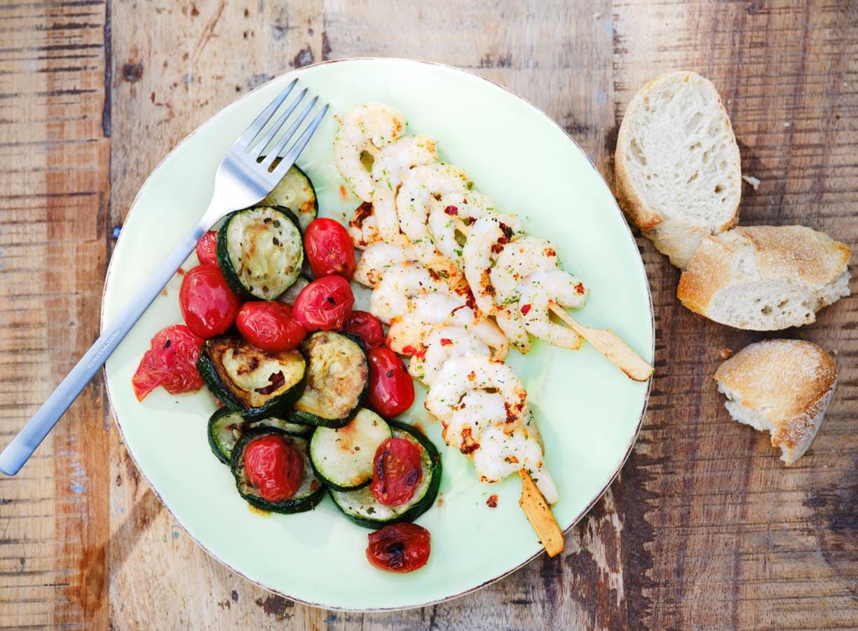 De bbq-garnalenspies, een ultieme barbecueklassieker, combineert goed met courgette!