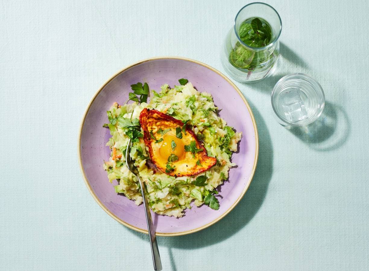 Venkelstamppot met kurkuma-ei