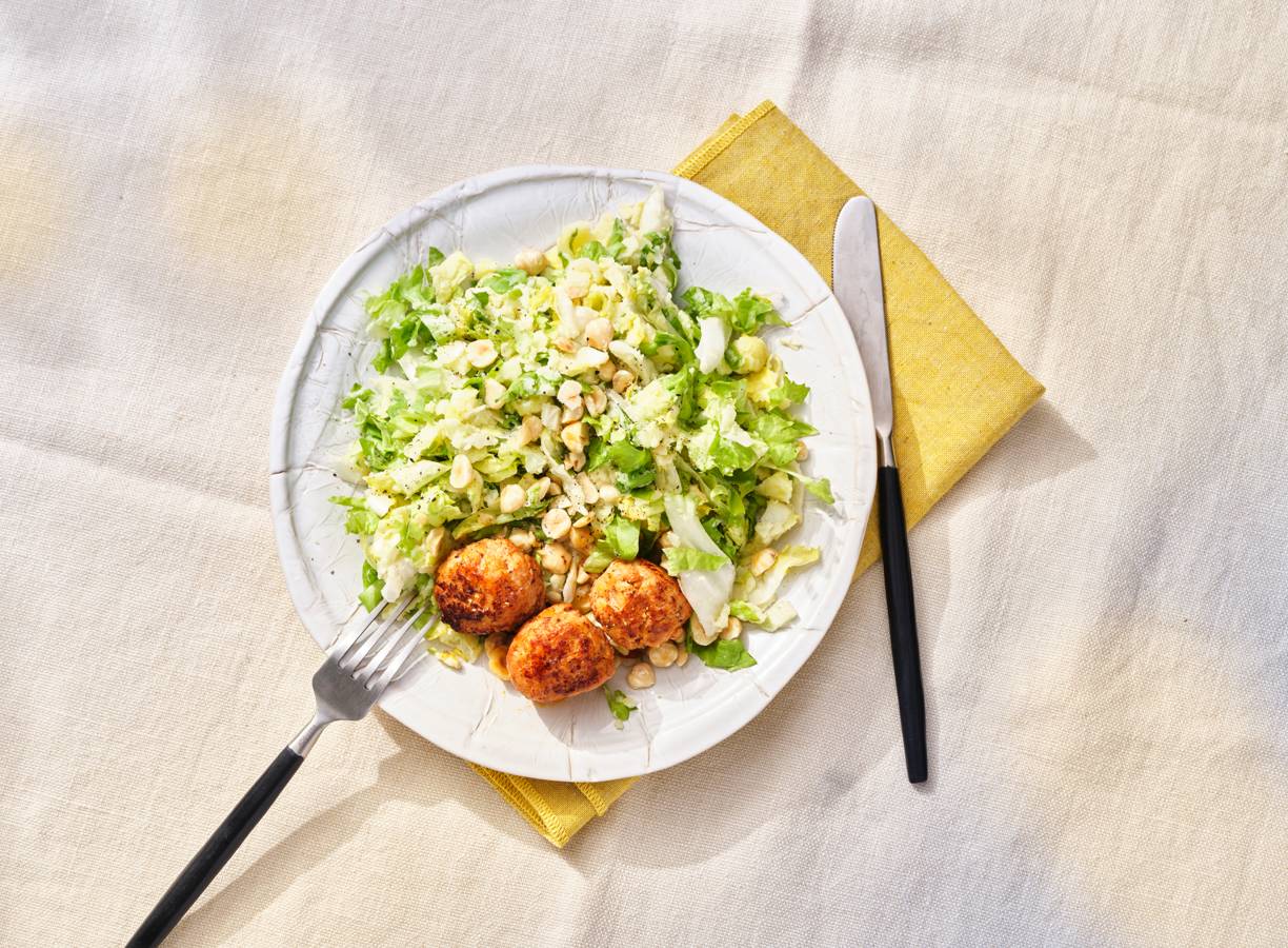 Zomerstamppot rauwe andijvie met kip-citroengehaktballetjes
