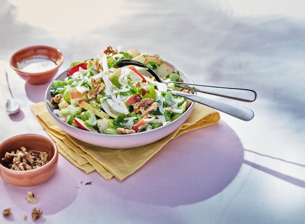 Waldorfsalade met bleekselderij, venkel en citroenmayo