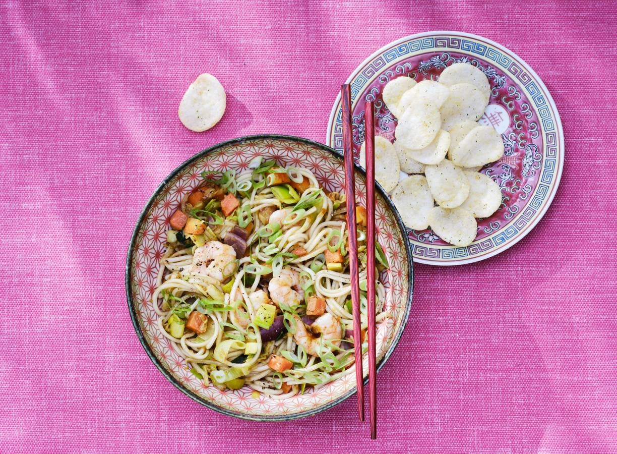 Deze snelle noedels met garnalen zijn perfect voor een drukke doordeweekse dag.