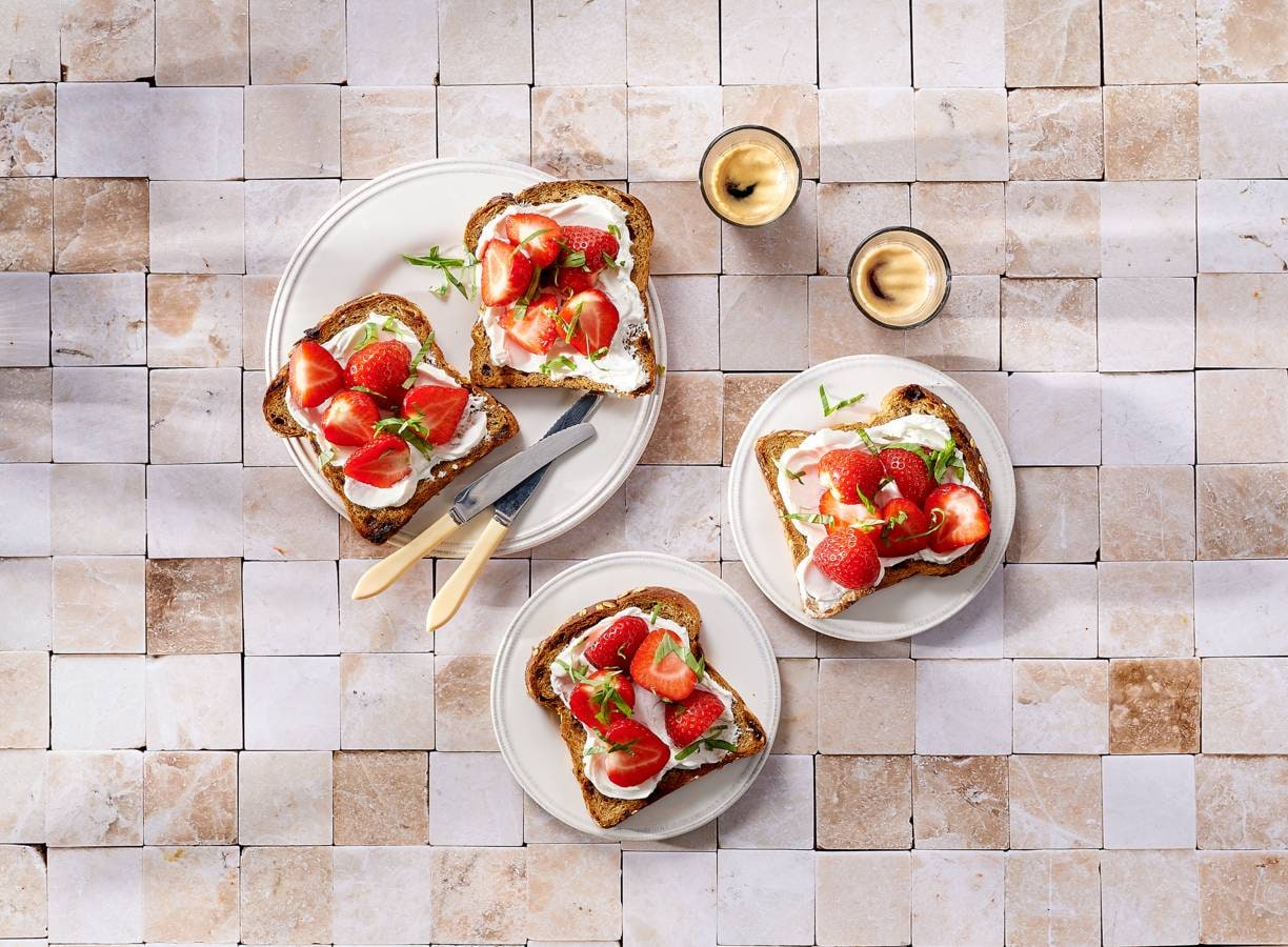 Aardbeien + geitenkaas + basilicum = een feest op je (muesli-noten)brood!