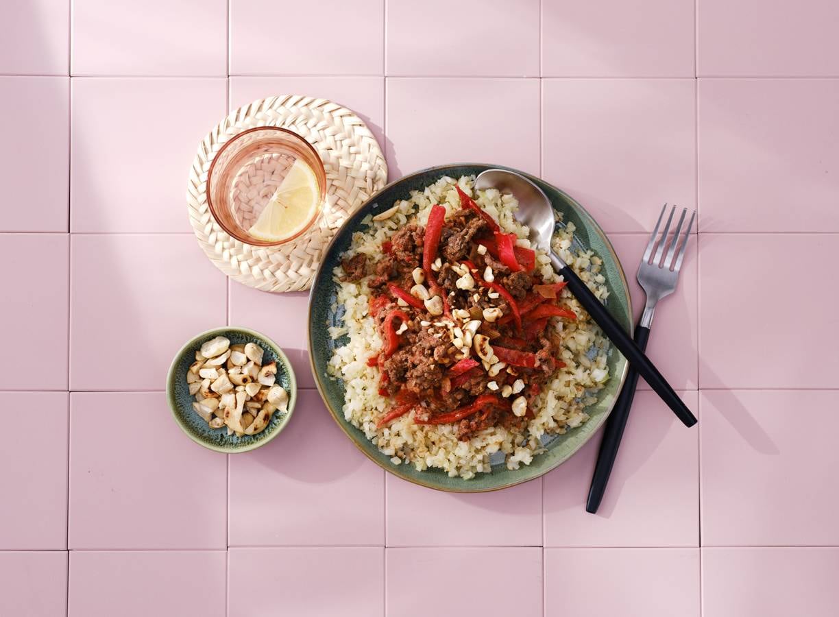 Haast, maar wil je wel gezond koken? Zet dan deze snelle tomaten-paprikastoof met tartaar en bloemkoolrijst op tafel.