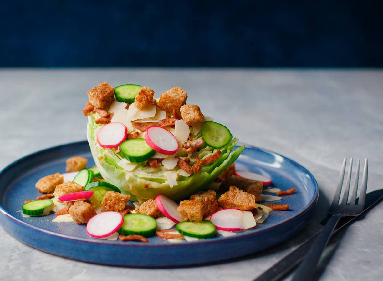 Wedden dat je deze wedge salad vaker gaat maken! Want waarom een salade snijden als je ook een mooie part kunt serveren?