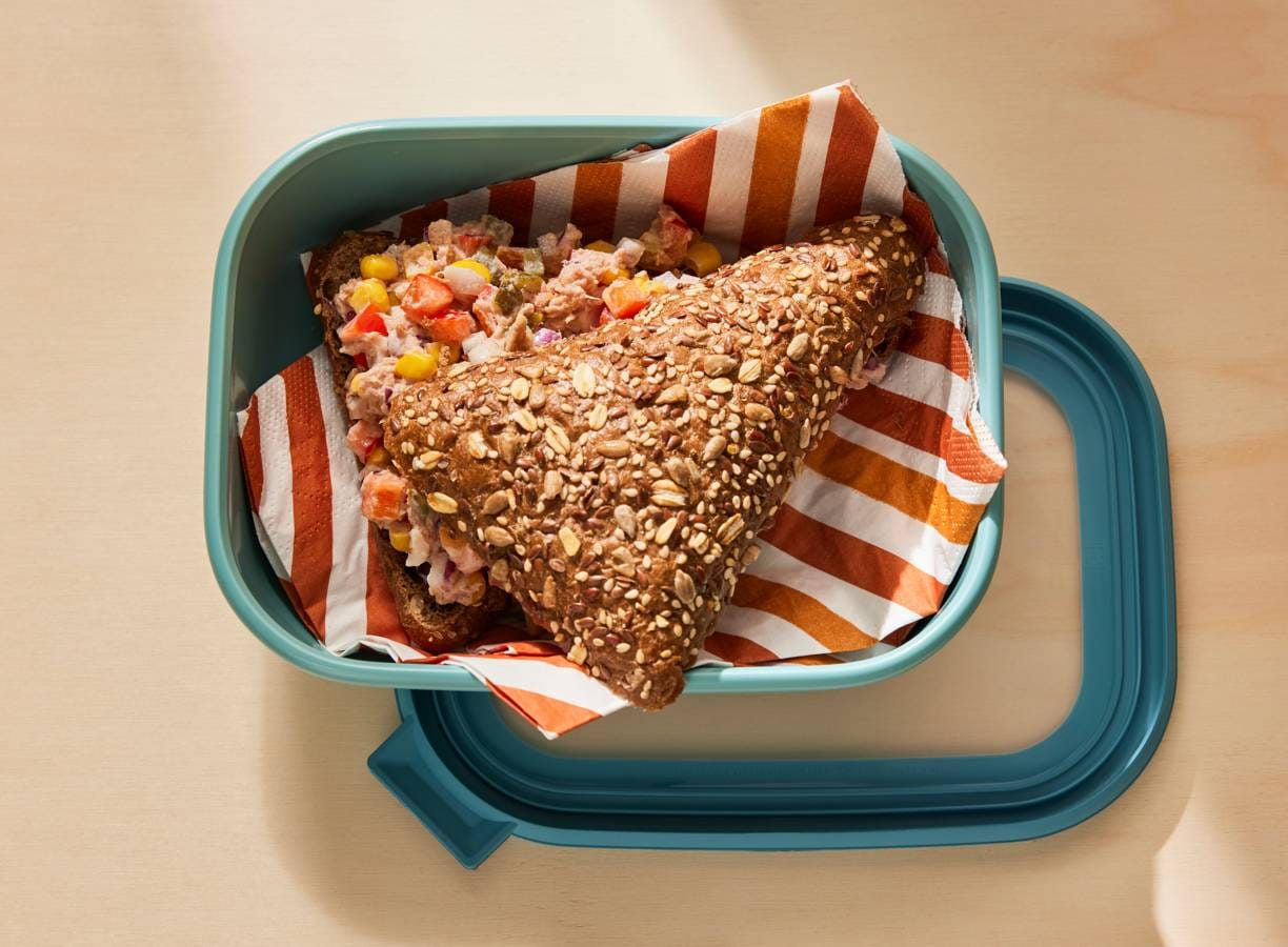 Bewaar de tonijnsalade apart van de broodjes en beleg je broodjes vlak voor je gaat eten.