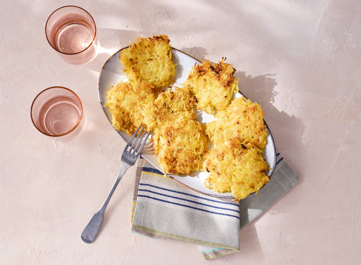 combinatietip:Traditioneel worden de reibekuchen met appelcompote gegeten. Ze zijn ook lekker bij vis, een gebakken ei of met een salade ernaast.
