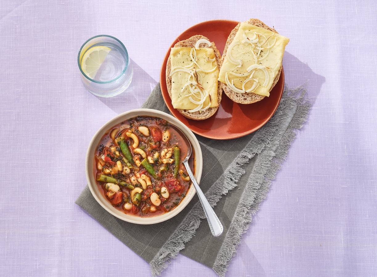 Leftover gezonde bonensoep met kaas-uibroodjes