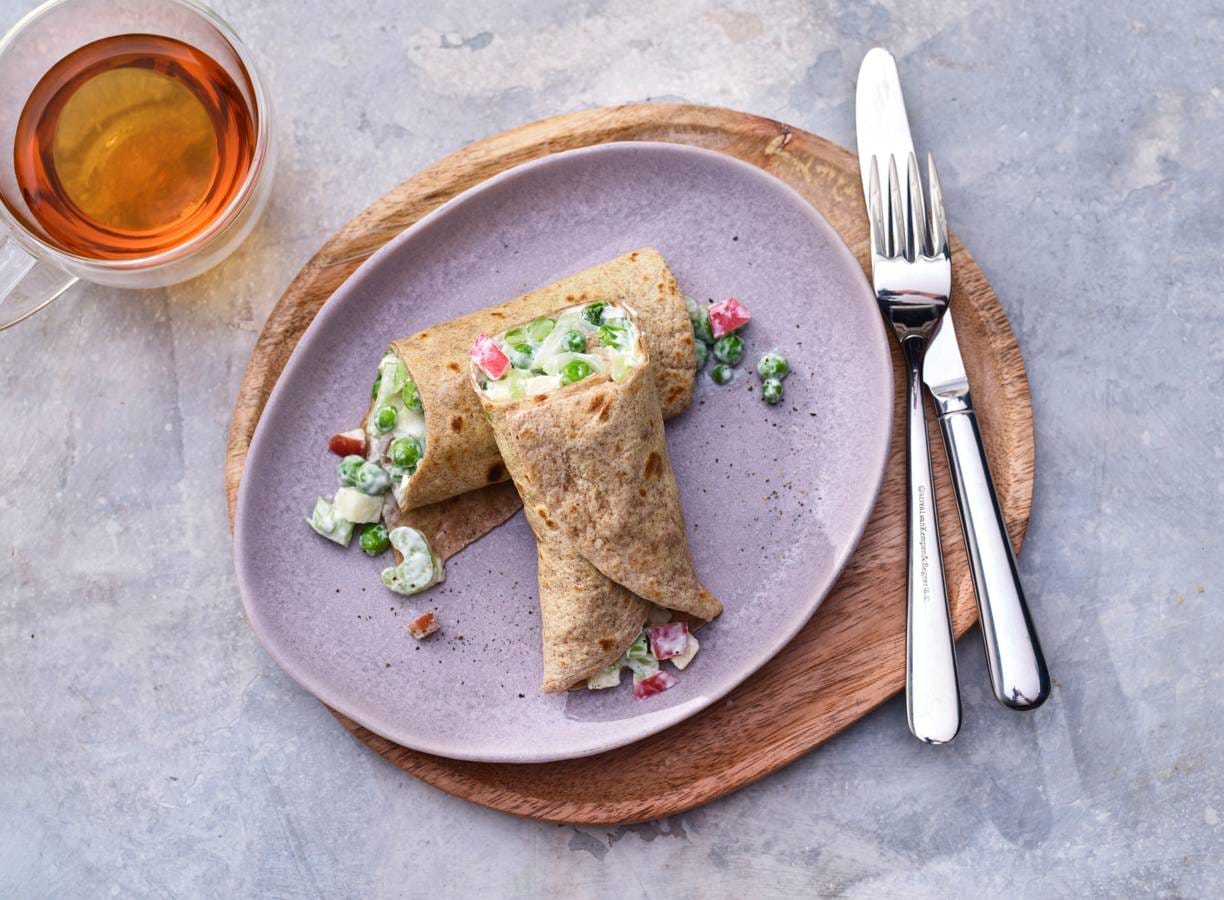 Wraps met appel-tuinerwtensalade