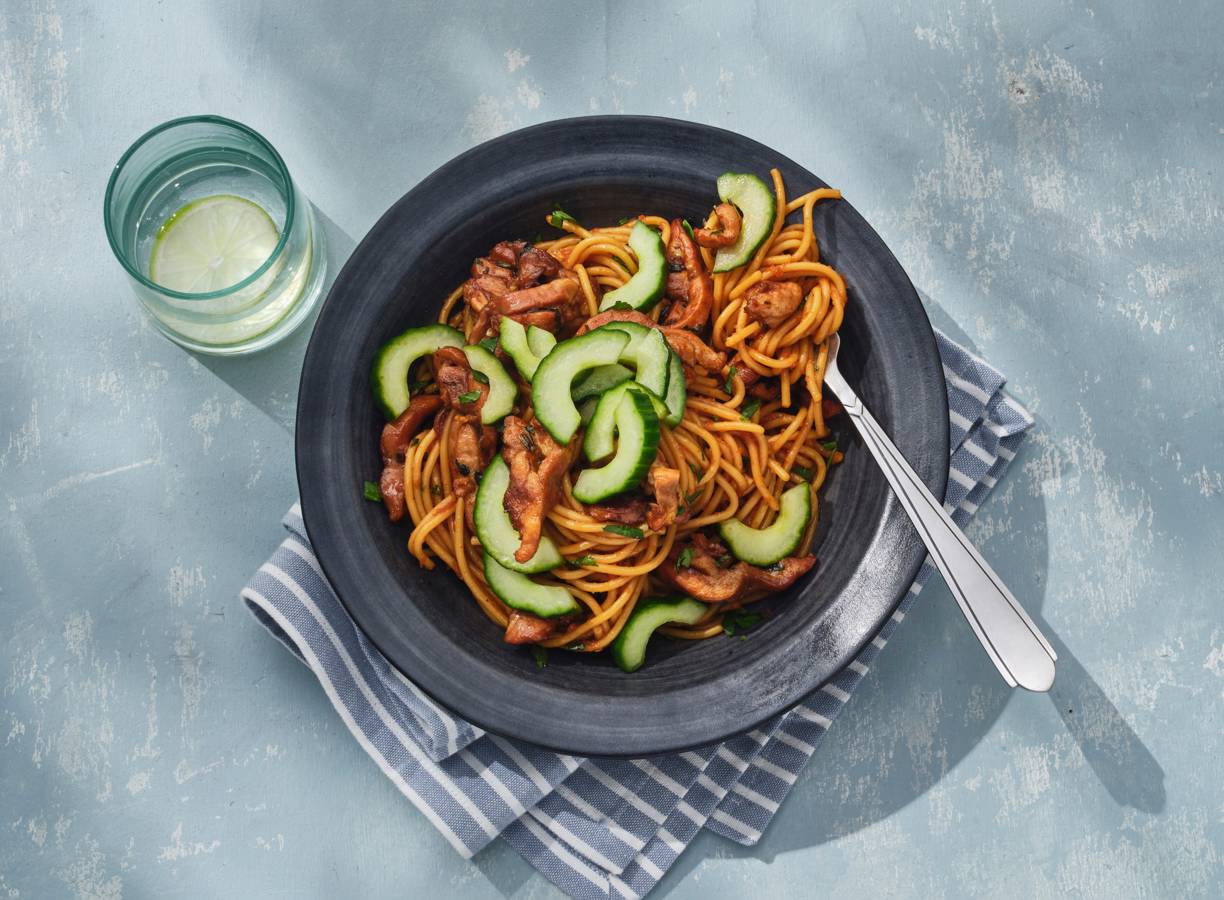 Bami met kip en komkommerzuur