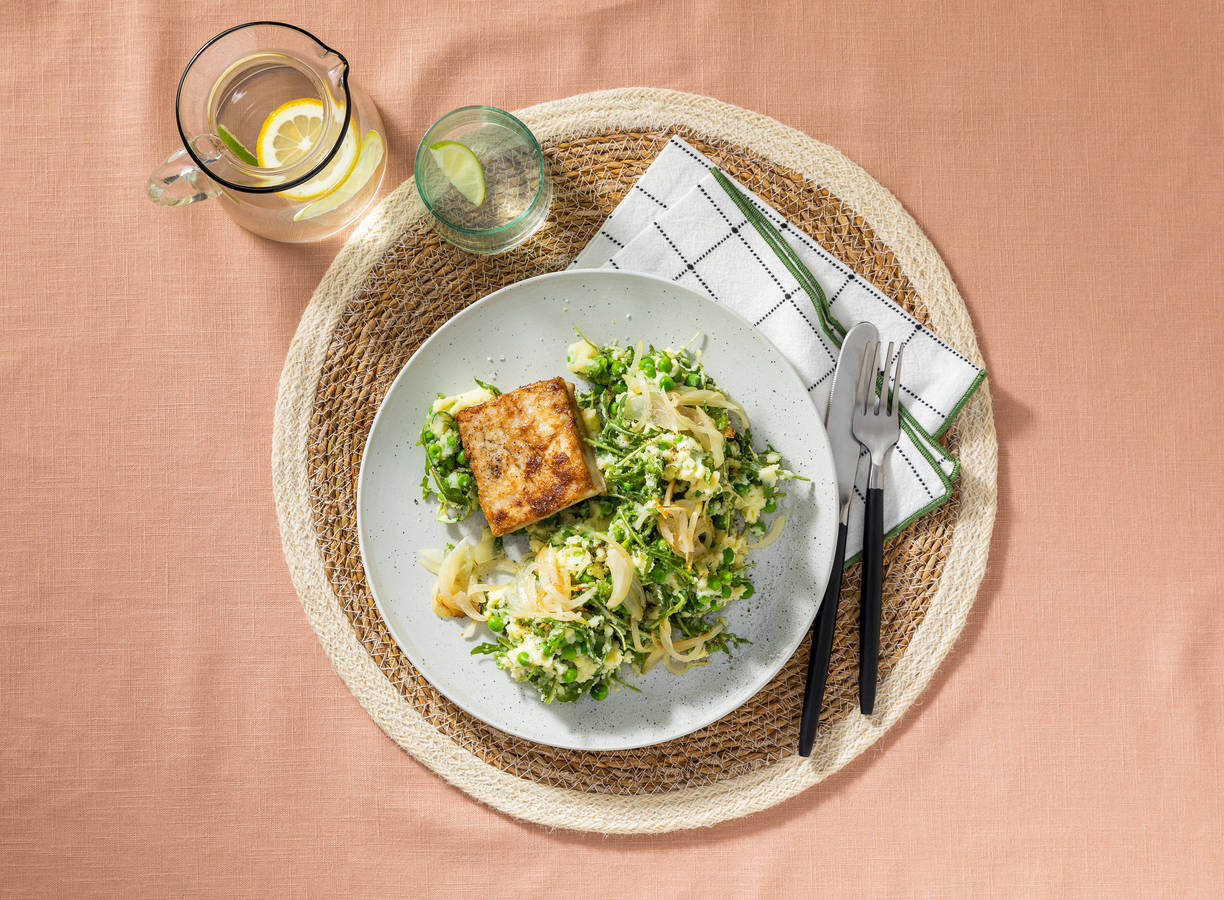 Stamp jezelf de keuken in met deze rucolastamppot met tuinerwten en vis. En het 'geheime' ingrediënt? Da's de ras el hanout, die de stamppot een nieuwe touch geeft.