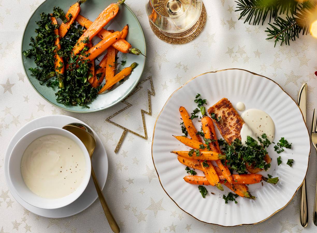 Zalm is het perfecte kerst hoofdgerecht, ook de plantaardige variant. Serveer proseccosaus bij de vegan zalm en je feestmaal is compleet. Nou ja, met de boerenkool en bospeen dan!
