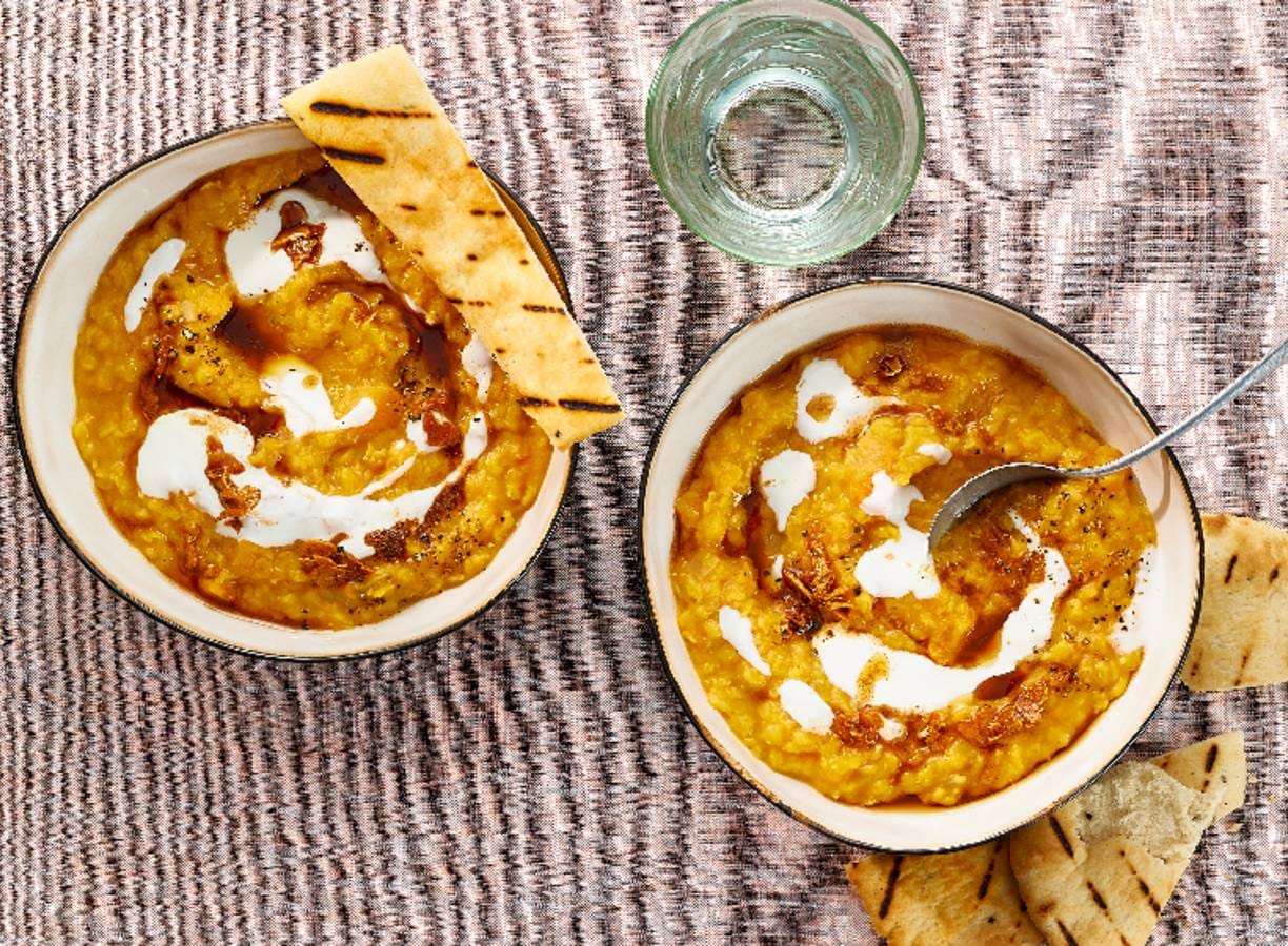 Pompoencurry met linzen