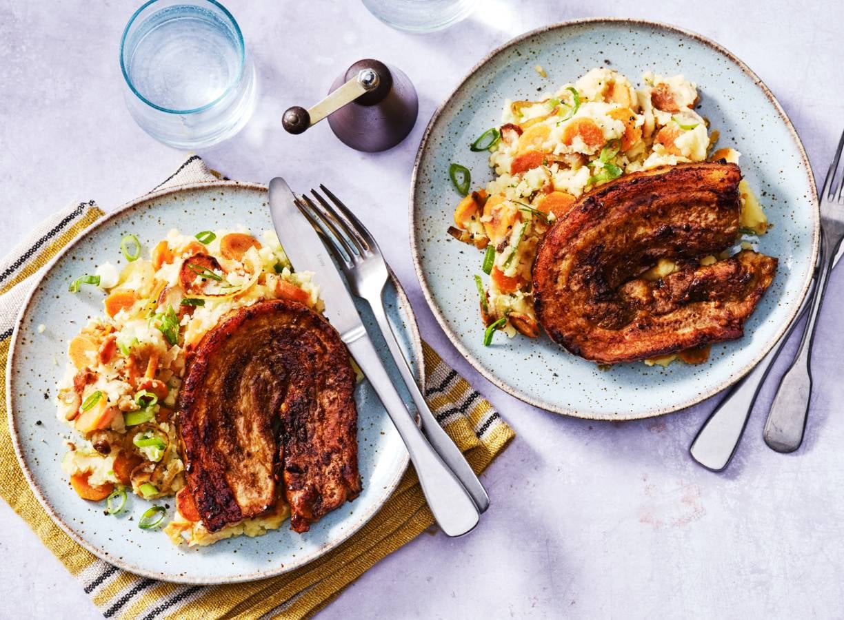 Stamppot met winterpeen, kimchi en speklapjes van Hugo Kennis