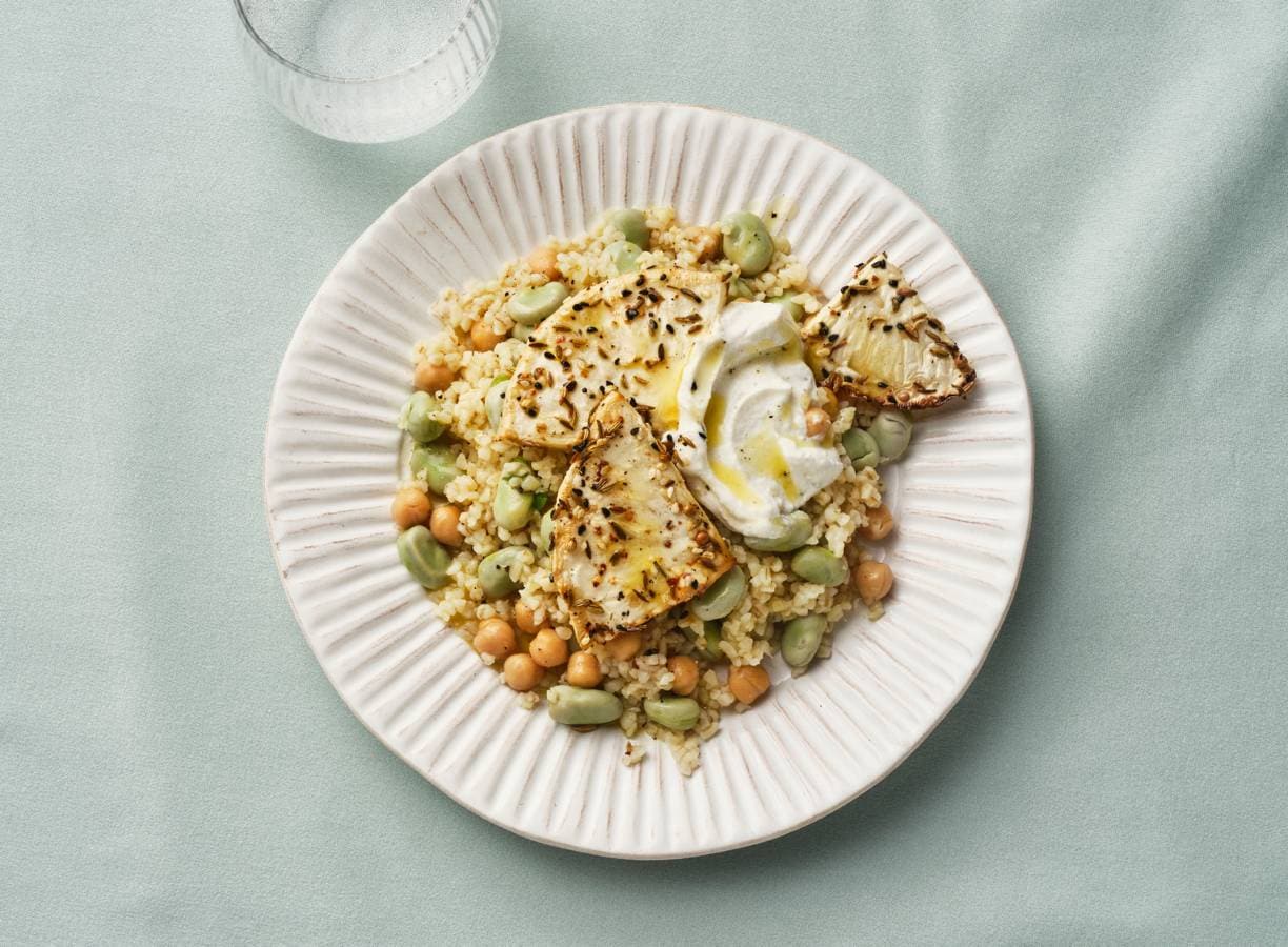 Bulgur met geroosterde knolselderij en whipped cottagecheese