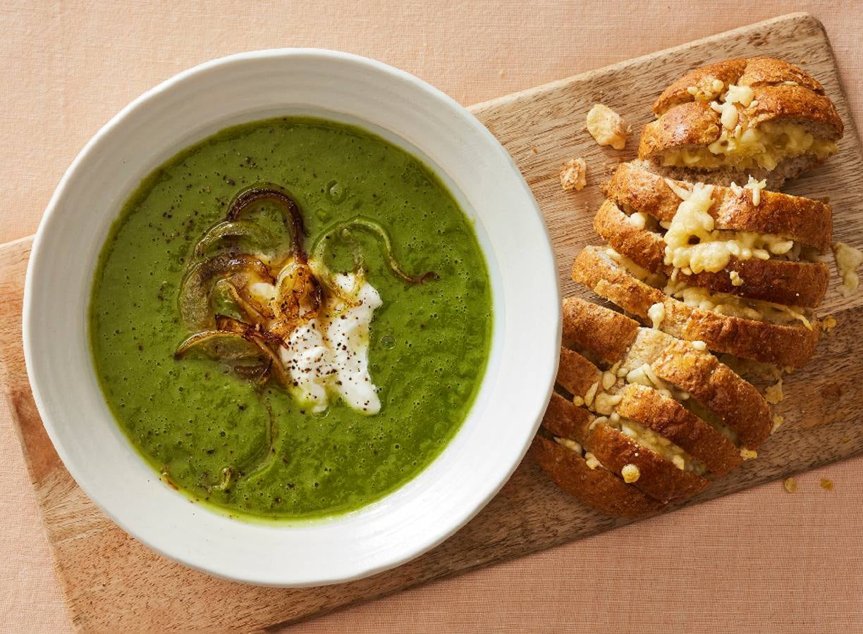 Ga voor een warme, voedzame lunch. Deze broccoli-erwtensoep met kaasbroodje is gezond en weer eens iets anders.