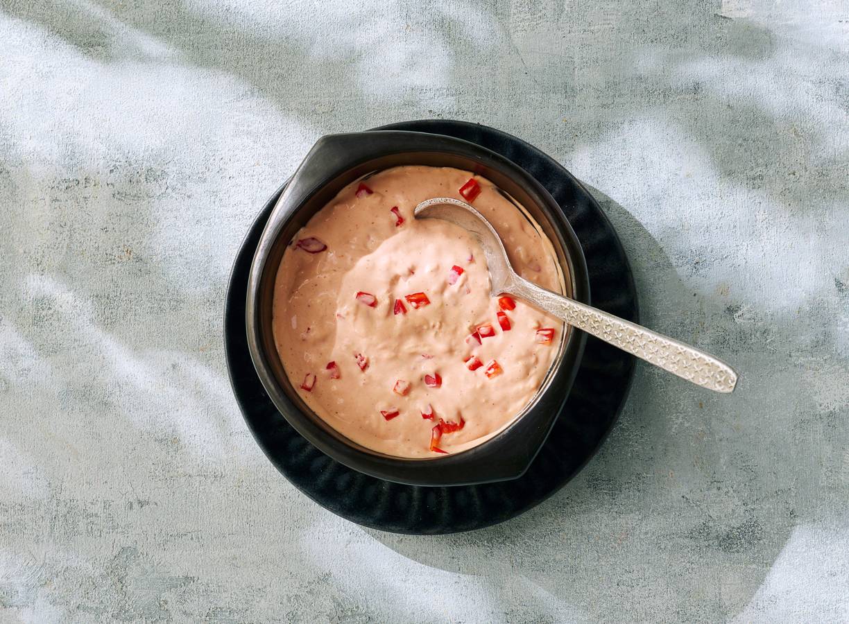 - algemeenLekker bij friet, garnalen of een aardappeltortilla. Voor een pittige andalousesaus kun je ook chilivlokken of hete gerookte-paprikapoeder toevoegen.