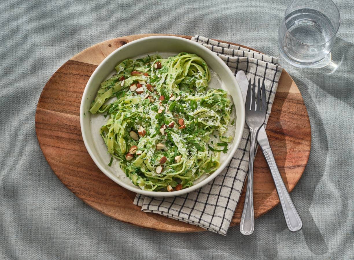 De één gek op stamppot en de ander op pasta? Sluit een compromis en maak deze tagliatelle met boerenkool, ricotta en citroen.