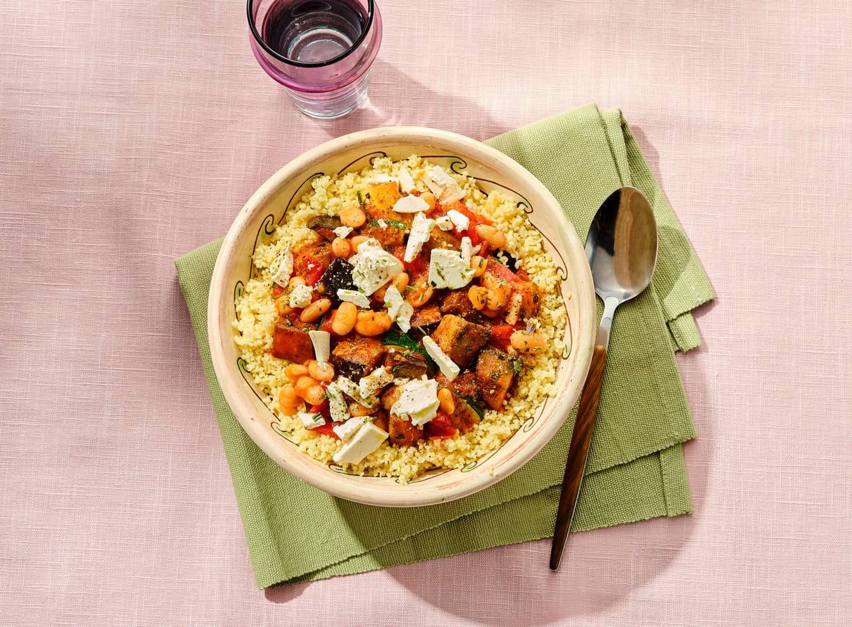 Couscous met geroosterde courgette, aubergine en witte kaas