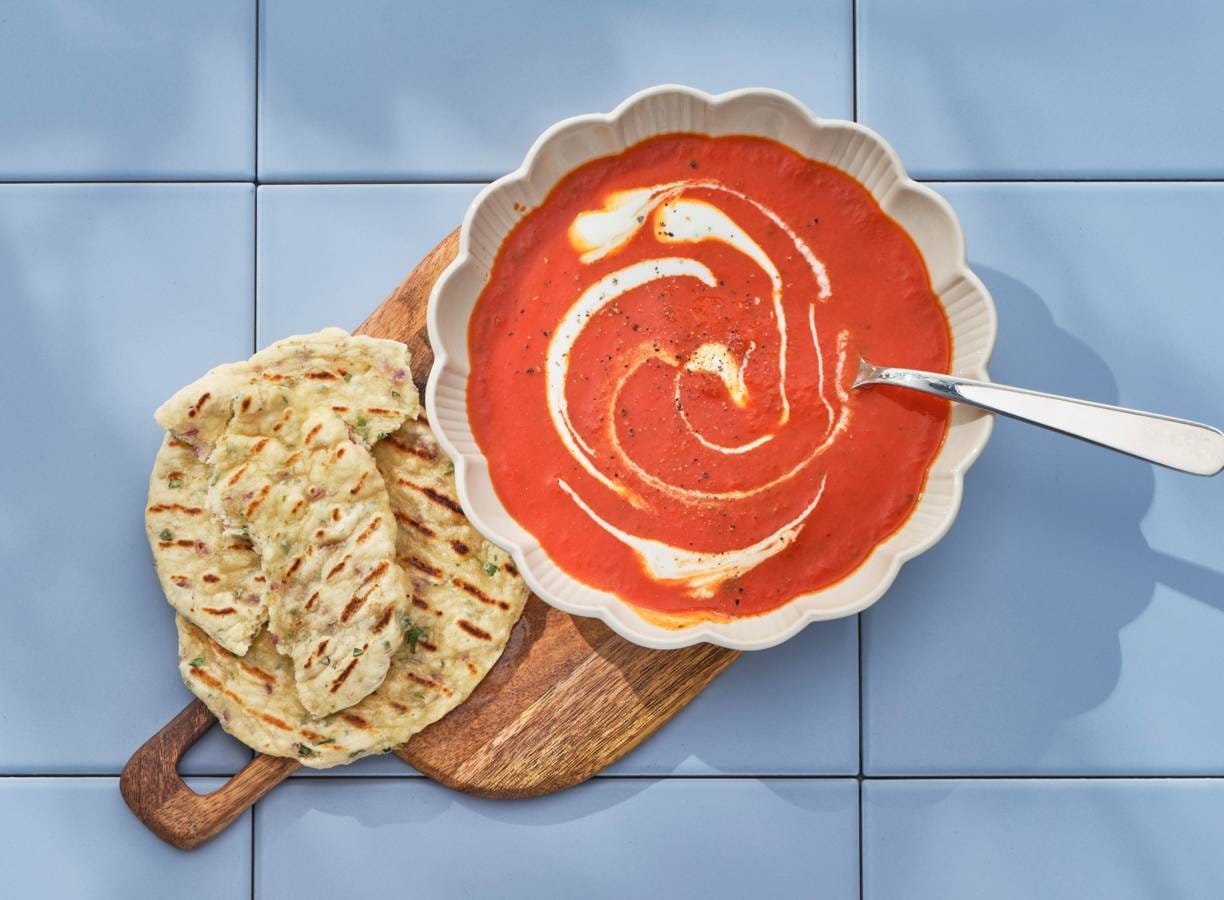 Geroosterde paprikasoep met zelfgemaakt platbrood