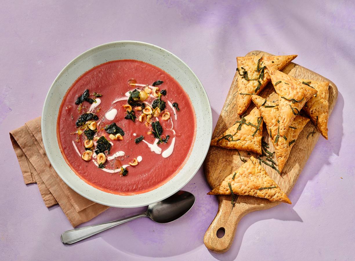 Altijd genieten met bieten. Maak er ook eens een bietensoep van. En de bladerdeeghapjes ernaast zijn onweerstaanbaar.