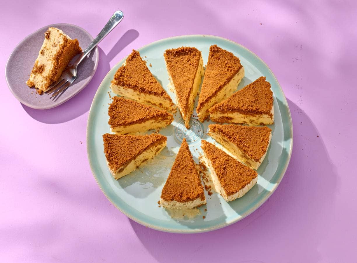 Giet het parfaitmengsel in de springvorm. Verkruimel het fijne koekkruim erover en dek af met vershoudfolie. Laat minimaal 8 uur of 1 nacht in de vriezer opstijven.