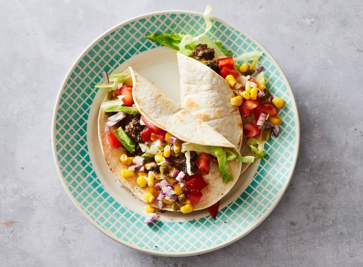 Verwarm de gordita’s volgens de aanwijzingen op de verpakking. Prak ondertussen de bonen grof met een pureestamper. Snijd de ijsbergsla in dunne reepjes. Serveer de wraps, gebakken bonen, tomatenblokjes, ijsbergsla en maissalsa in aparte bakjes, zodat iedereen zijn eigen wrap kan vullen.