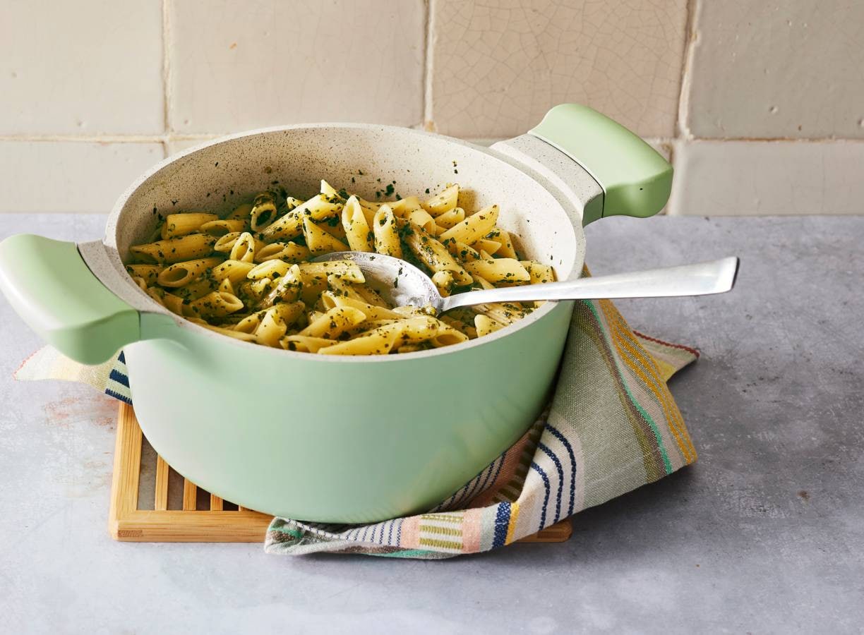 Met deze penne met pesto zet je nog eens een snelle maaltijd op tafel. Al na 15 min. kan iedereen aanschuiven.