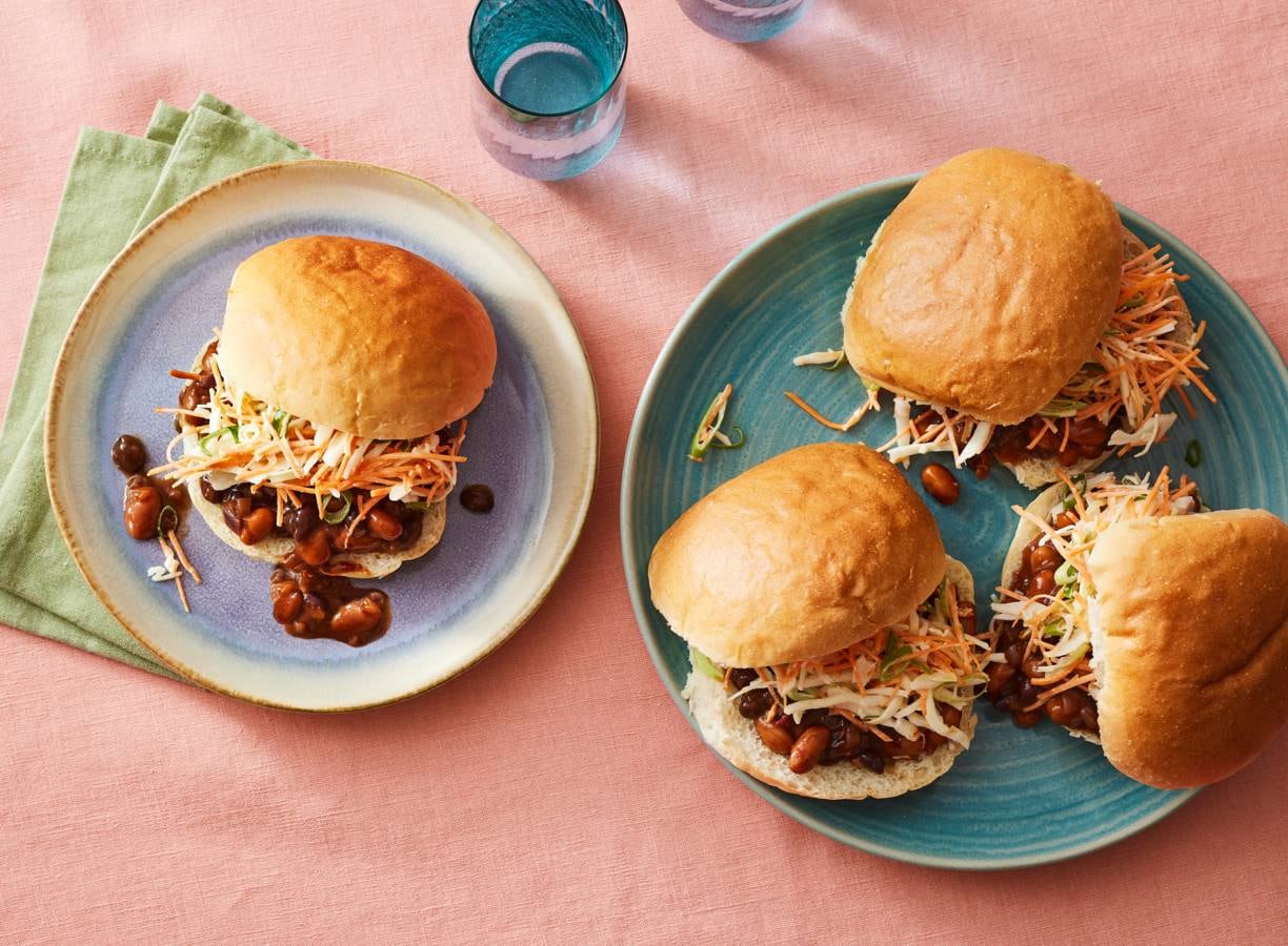 Snijd de bakkersbollen open. Verdeel achtereenvolgens de bonenstoof en coleslaw erover en leg de bovenkant van de broodjes erop. Serveer direct.