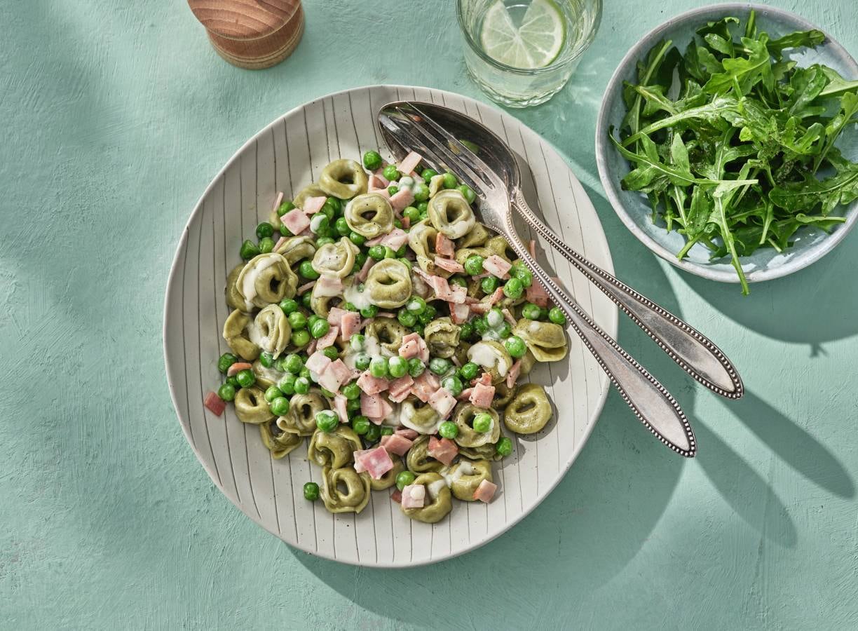 Zin in een romige pasta? Tortellini met romige ham-roomsaus en tuinerwten, een bekende combinatie die binnen 15 minuten klaar is.