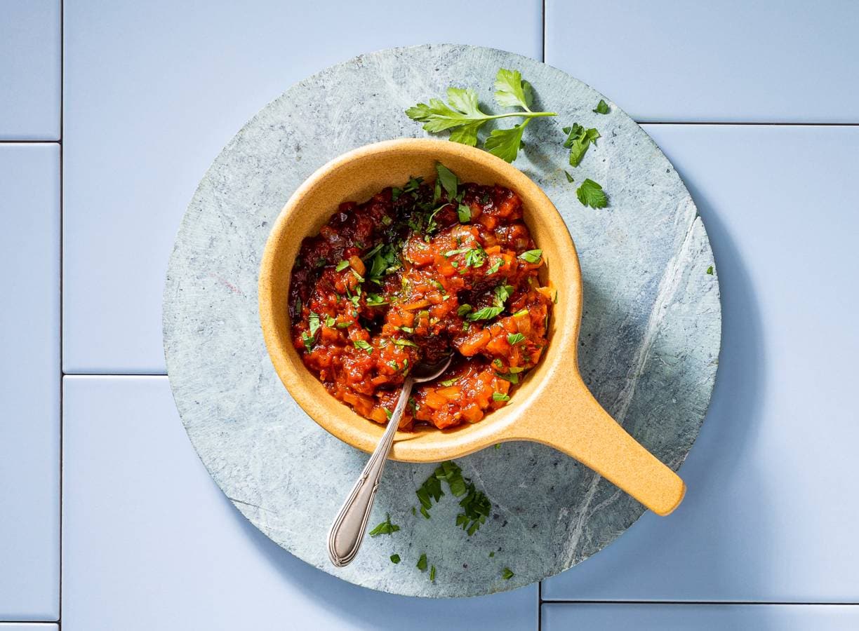 Snijd ondertussen de peterselie fijn en meng erdoor.
