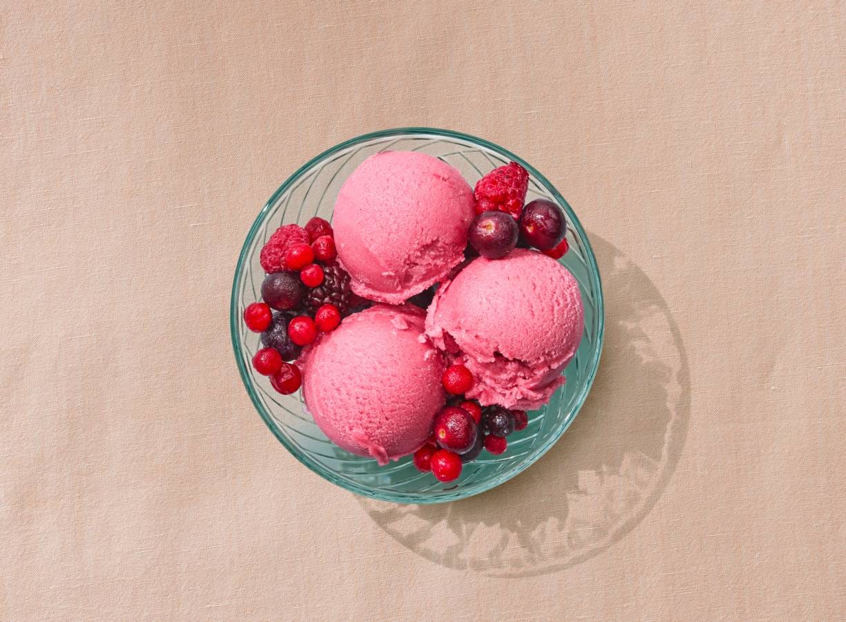 Kleur de dinertafel rood met dit dessert van bosvruchtensorbet met zomerfruit!