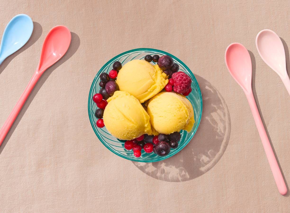 Mangosorbet met zomerfruit