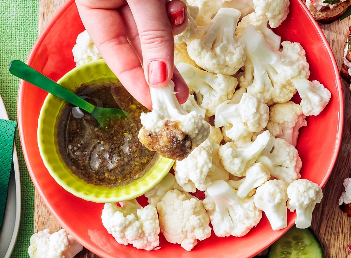 Dit gezonde hapje van bloemkoolroosjes meet ansjovisdip staat ligt in een handomdraai op de borrelplank. 3, 2, 1... dippen maar!