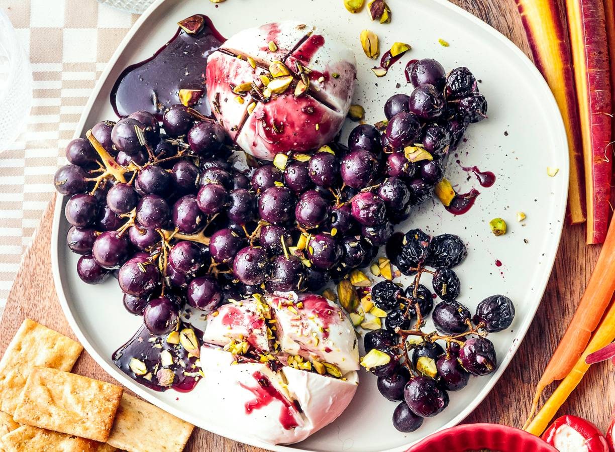 Gegrilde druiven met mozzarella en pistache