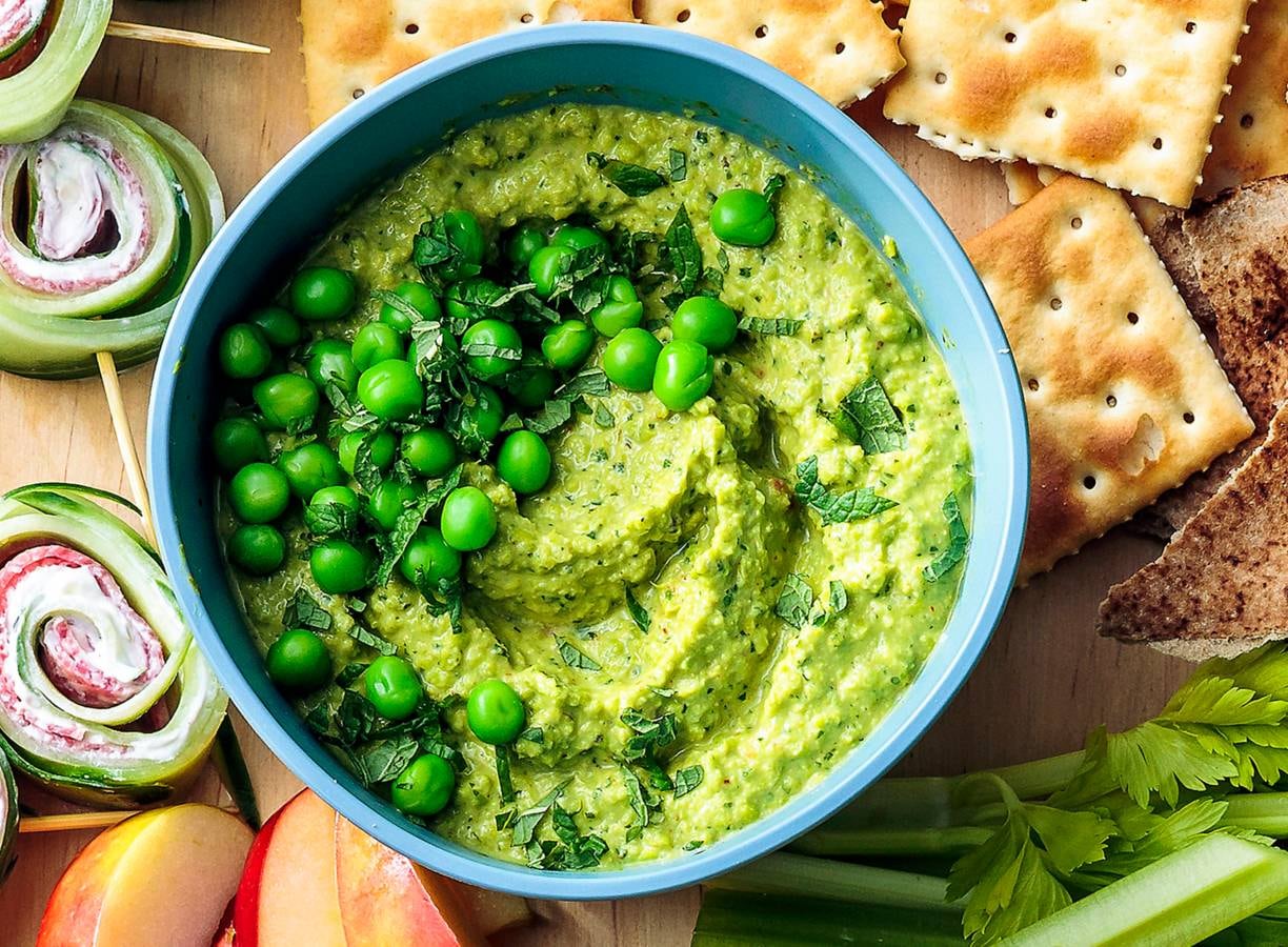 Platbrood en tuinerwtendip met munt
