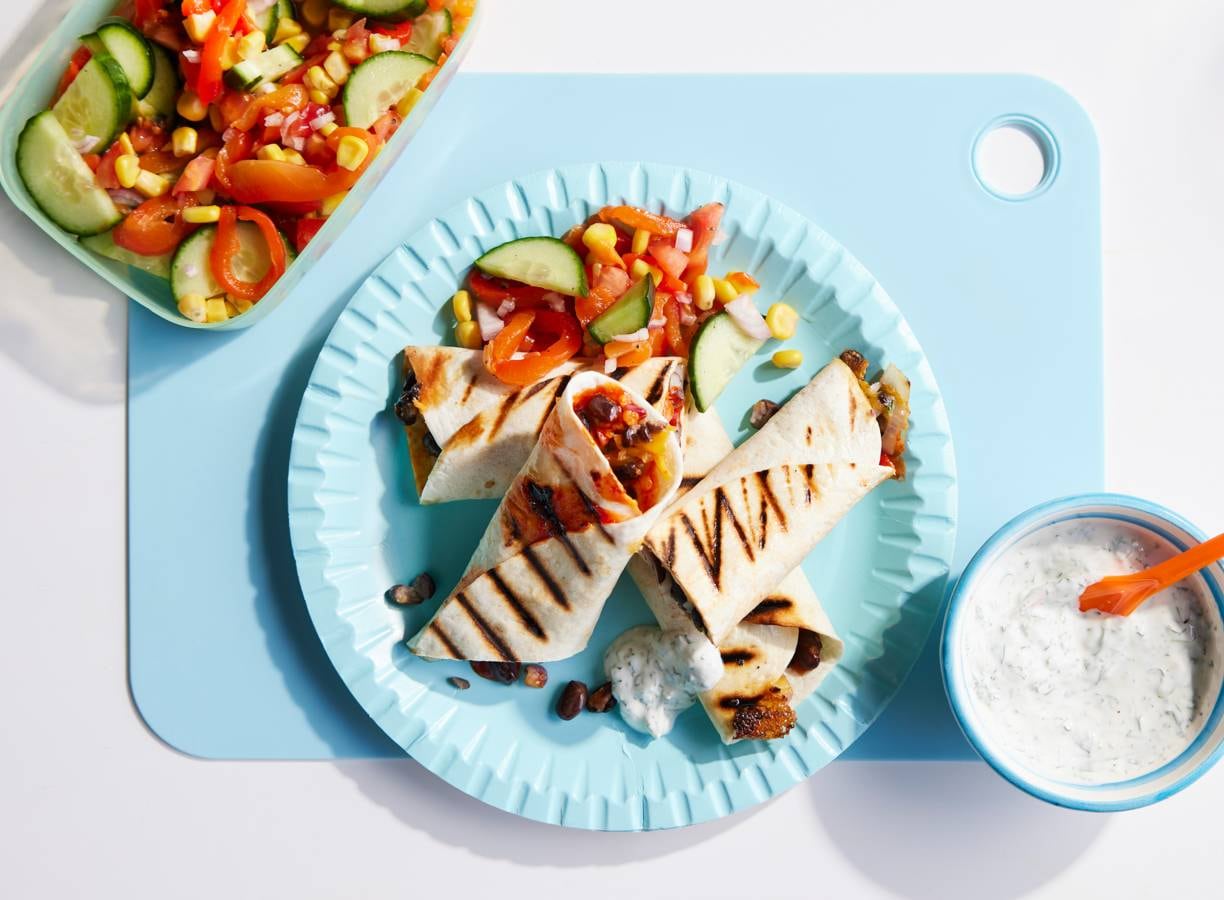 Gril de burrito’s 6-8 min op de barbecue, zodat de kaas smelt en er grillstrepen ontstaan. Keer regelmatig, de wraps kleuren snel.