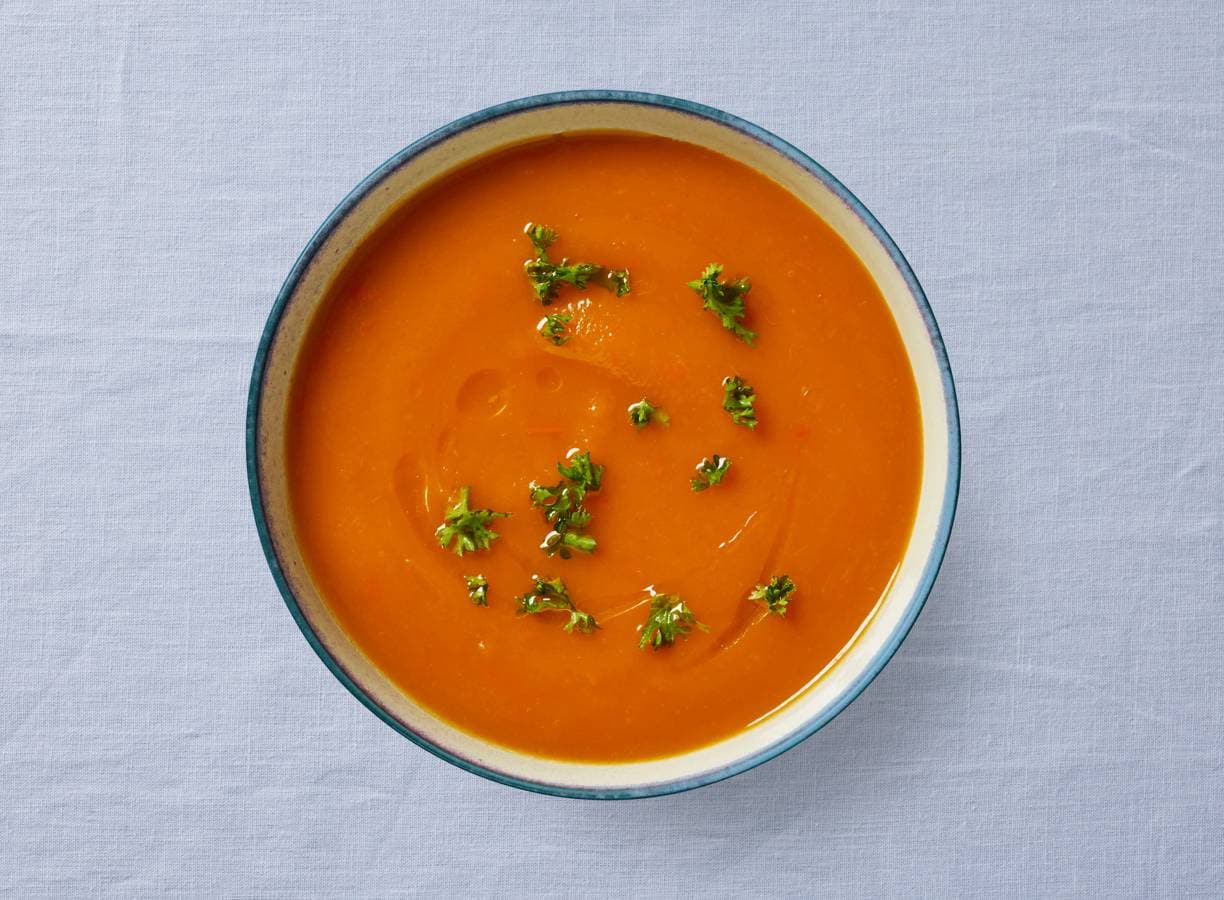 Zoete-aardappelsoep maken? Goed idee! Maak het met winterpeen, ui en paprika. Extra makkelijk met het verspakket van Albert Heijn.