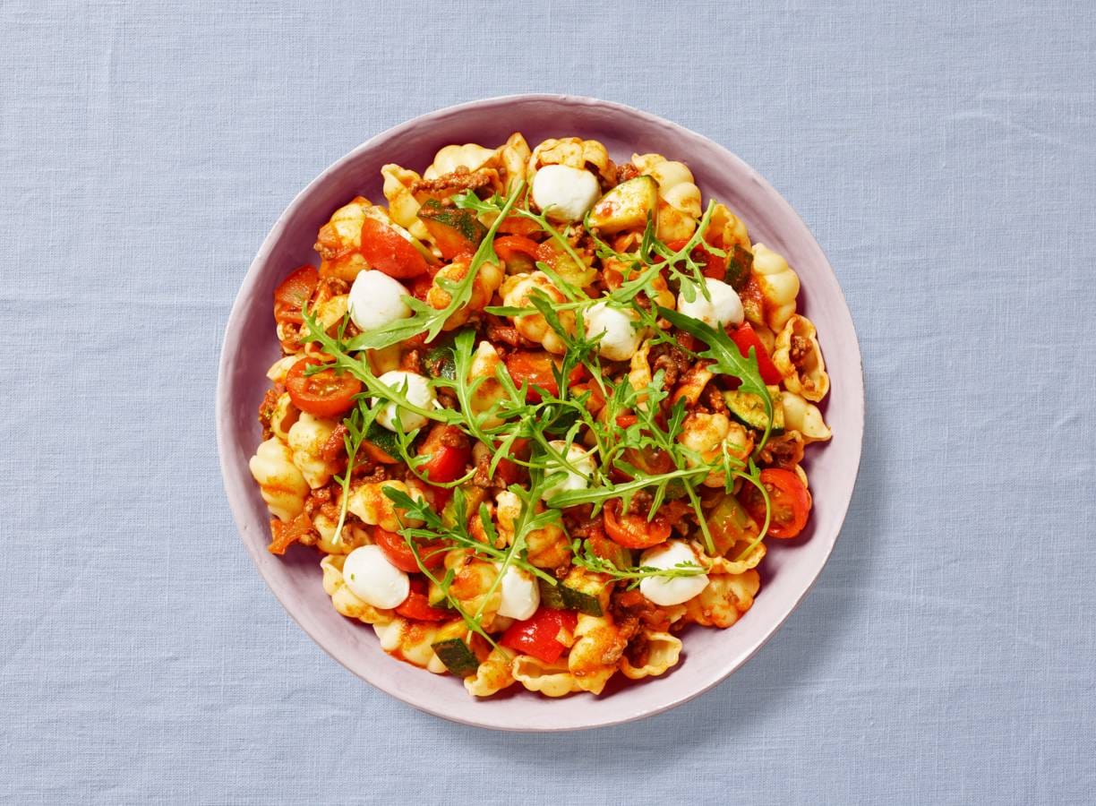 Voor deze schelpjespasta met kruidige tomatensaus heb je een verspakket, gehakt en maar één pan nodig. Ideaal, toch?