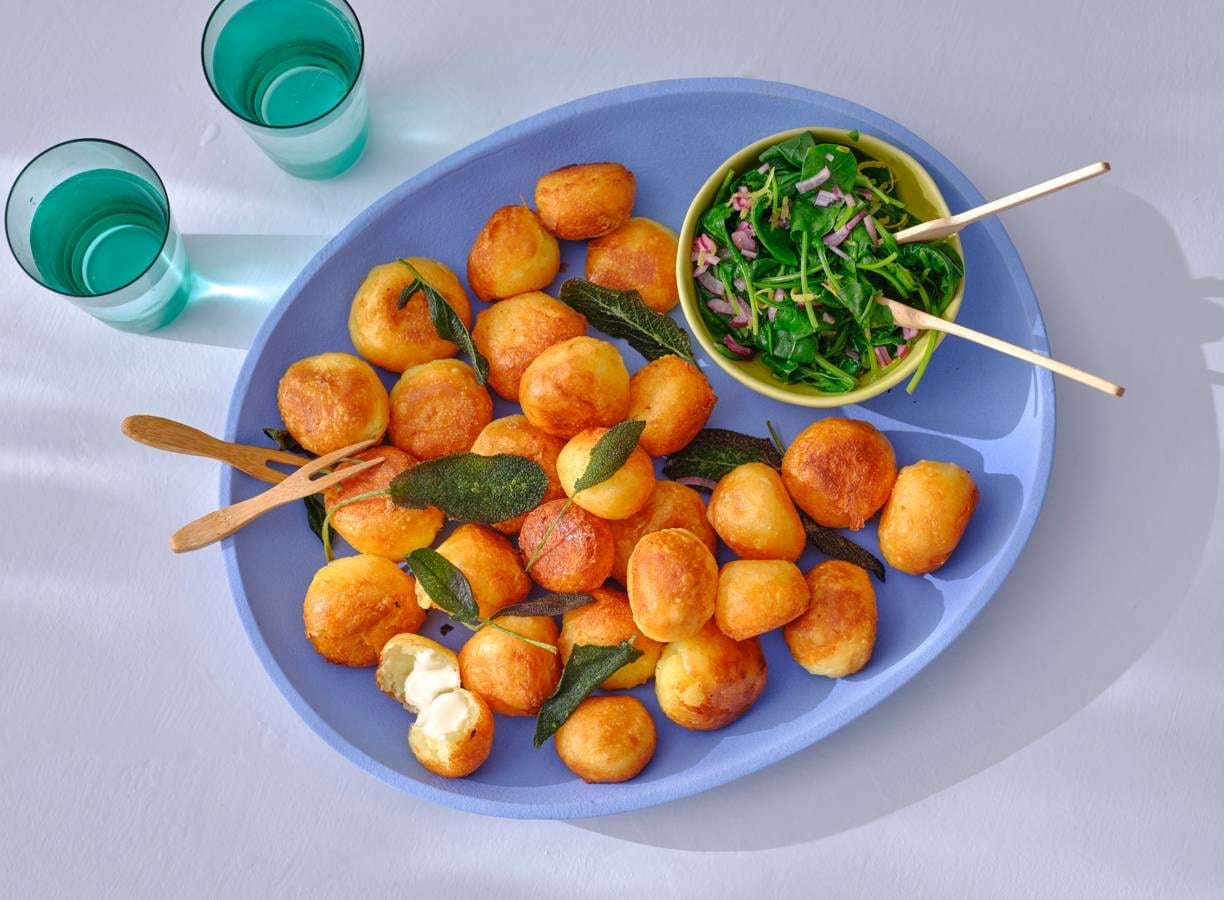 Met hun knapperige korstje en zachte vulling schreeuwen deze aardappeldumplings met kaas en spinazie comfortfood! Probeer daar maar eens vanaf te blijven.