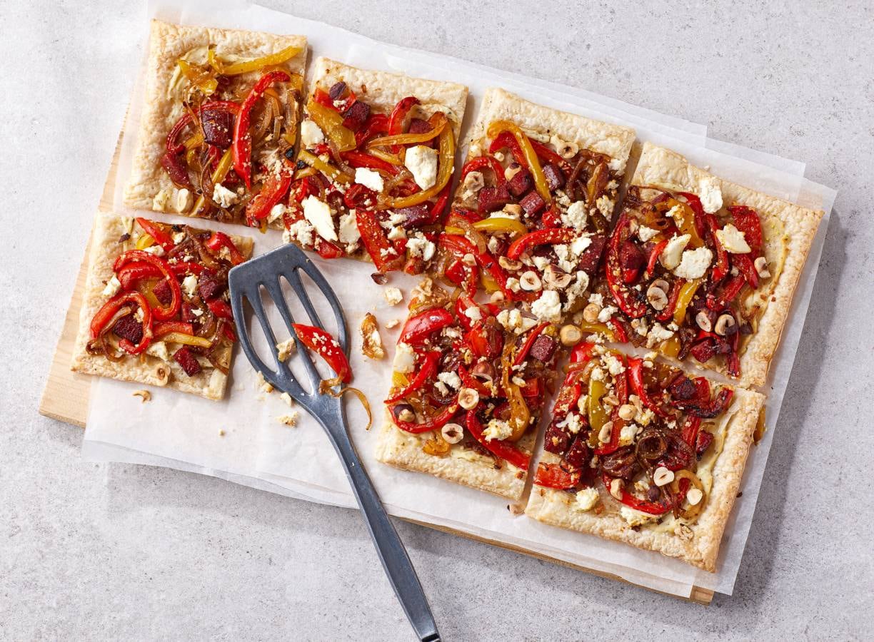 Borrel of avondmaal? Deze plaattaart met paprika, witte kaas en salami is niet alleen voor elke gelegenheid geschikt maar ook nog eens lief voor jouw portemonnee.