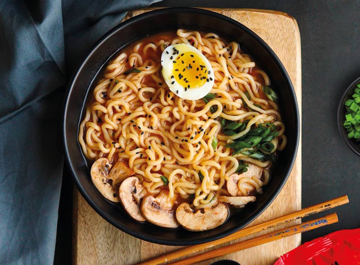 Koken met Nongshim: ramyun-noedels met een pittige twist. Voeg als topping een bosuitje, champignons, rode peper en niet te vergeten: een eidooier toe! Roer alles tot één geheel en je eenvoudige noedelsoep is nu een échte maaltijd.