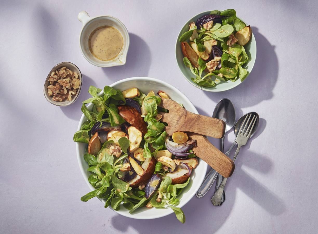 Geroosterde pastinaaksalade met peer, walnoten en honing-mosterddressing
