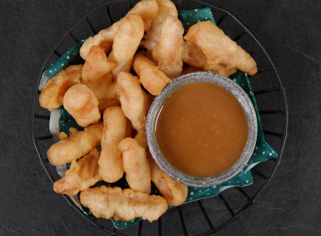 Apple pie fries: dankzij de kaneel, vanillesuiker en appel proef je de heerlijke smaak van appeltaart. En het beste moet nog komen: dippen in karamelsaus!