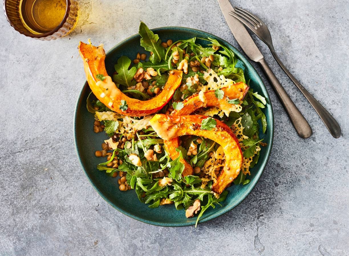 Wat Hugo met de pompoen doet? Roosteren met specerijen en aftoppen met abdijkaas en walnoten.