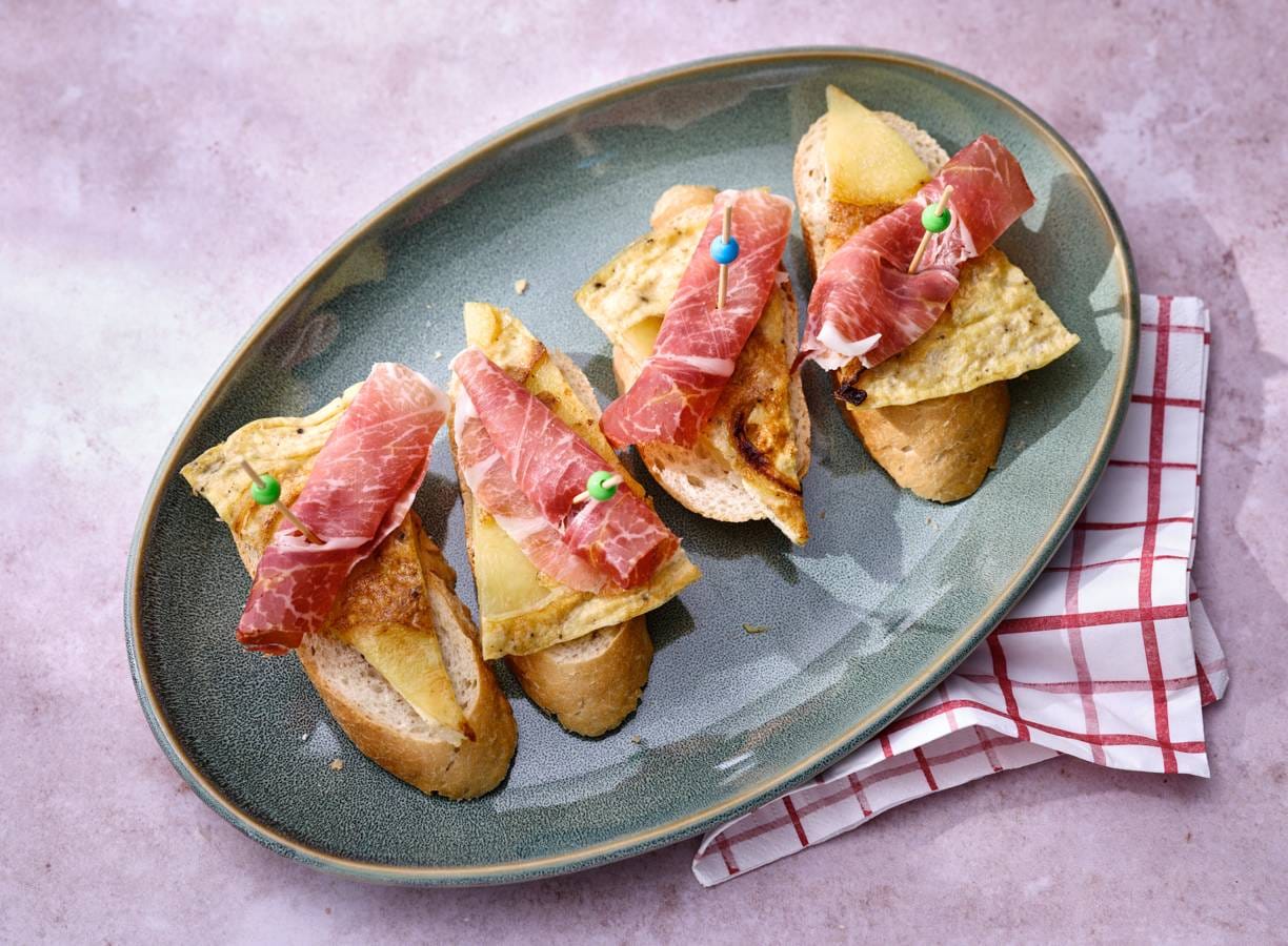 Tortilla kennen we natuurlijk ook al als onderdeel van tapas. Maar ook als pincho doet het Spaanse aardappelomelet het goed! Combineer met ibericoham, prikker erdoor en je pincho is klaar.