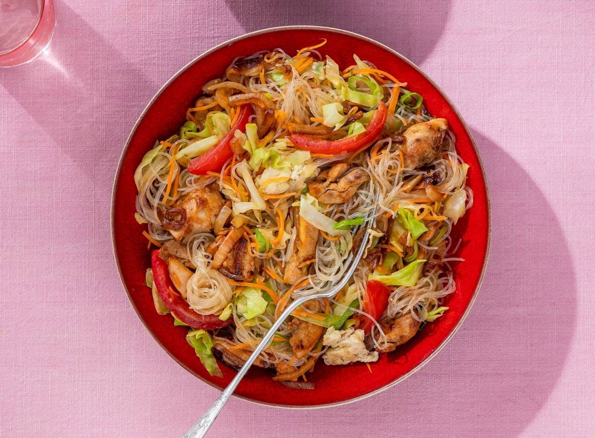 vegatip:Vervang de kip door in plakjes gesneden shiitake of blokjes tofu.