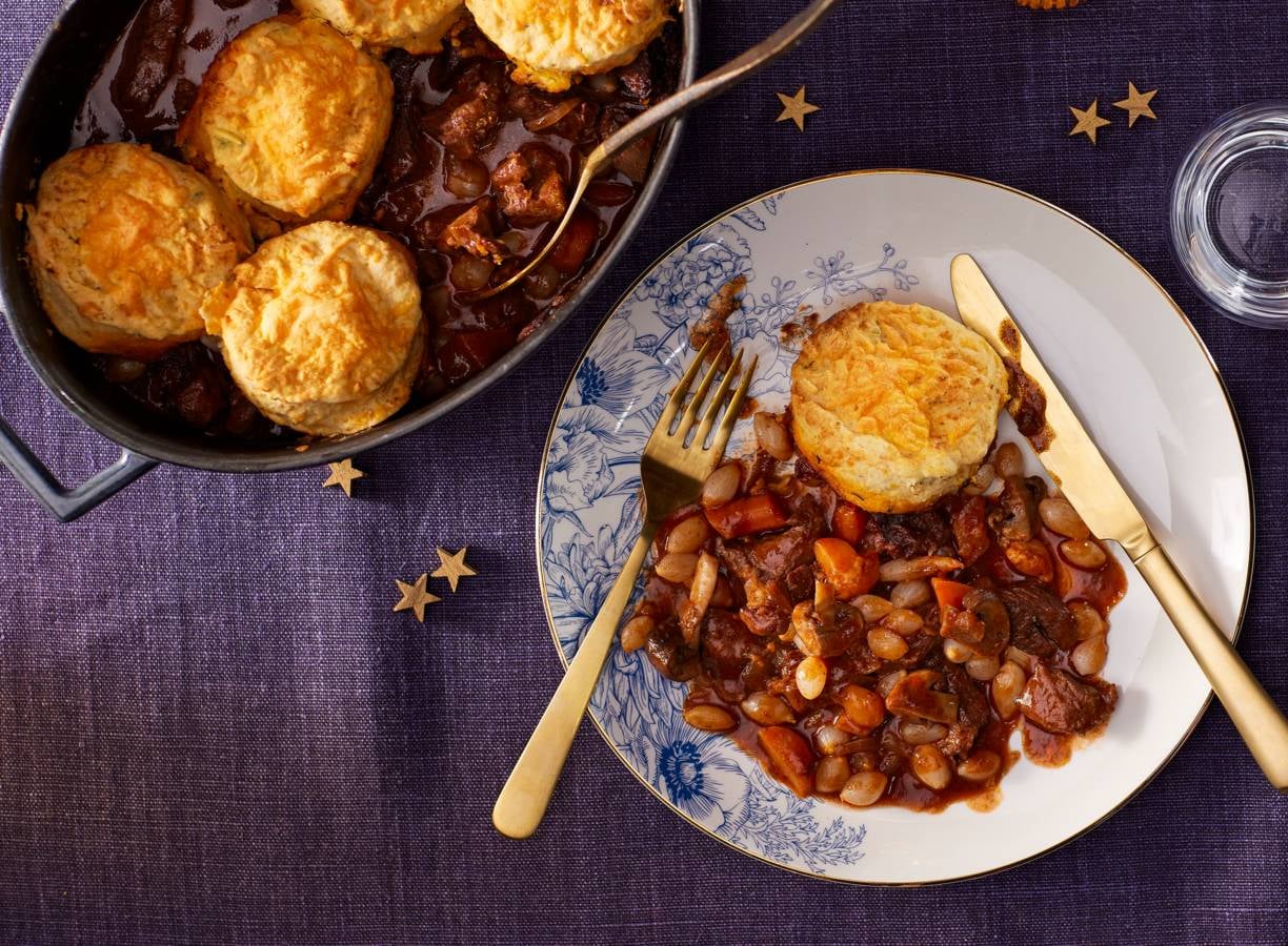 Deze klassieke runderstoof met rode wijn wordt extra lekker door de sappige zilveruitjes en knapperige kaasscones. Lekker als hartverwarmend hoofdgerecht tijdens kerst of gewoon als winters stoofpotje in het weekend.