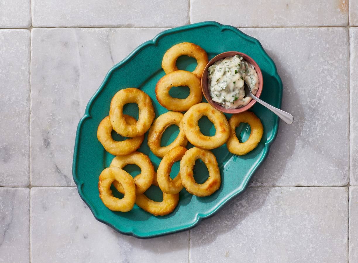 Op smaak gebracht met verse peterselie en gedipt in romige plantaardige aioli, van deze vegan calamares kan jij niet afblijven. Perfect voor een vegan tapas-avondje.